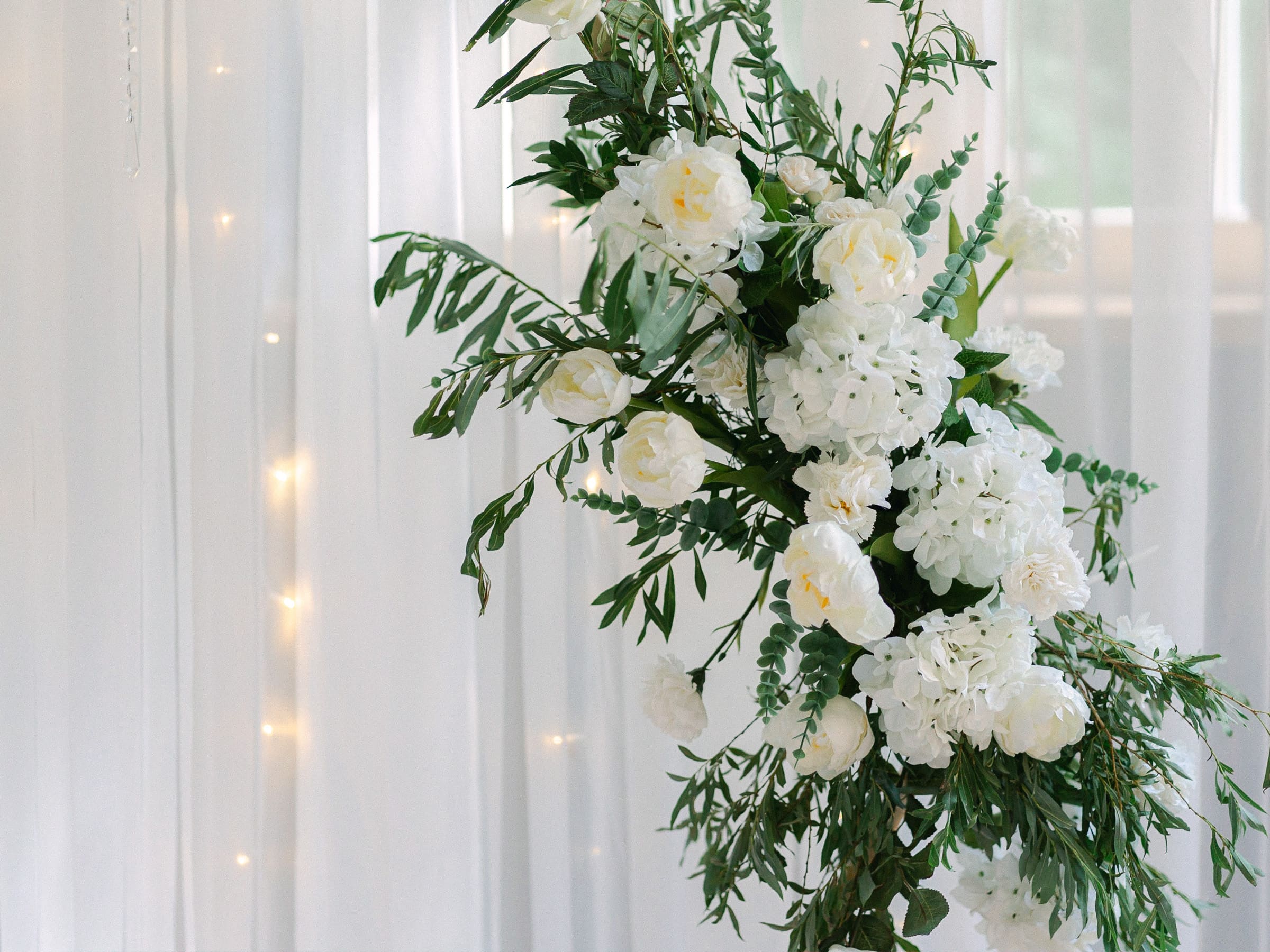 Hinter dem Gebäude war bereits alles vorbereitet und liebevoll geschmückt. Der Traubogen mit Stoffbahn und Blumenschmuck. Davor der rote Teppich ausgerollt.